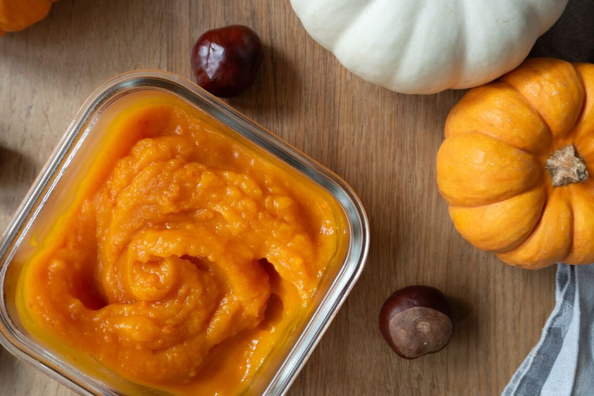 Kleiner Alltagstipp: Ich friere Kürbismus in Eiswürfelformen ein. So habe ich immer kleine Portionen parat, die ich nach Bedarf in Saucen, Smoothies oder Süßspeisen rühren kann.
